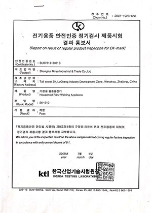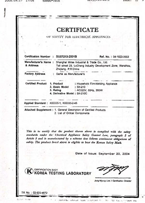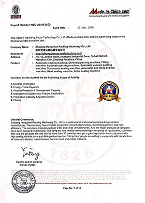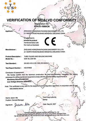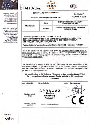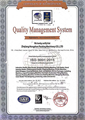 La compañía aprobó la certificación del sistema de gestión de calidad ISO9001, la máquina de sellado principal del producto obtuvo la certificación de la Comunidad Europea CE.